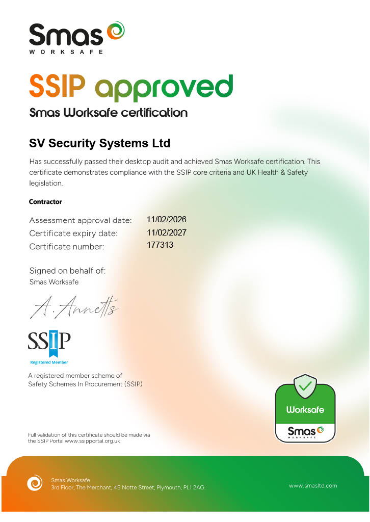 The engineers and office staff employed by SV Security Systems are all police vetted and DBS checked. Our engineers also hold up to date ECS cards to ensure they are up to date on health and safety practices. They have been selected for their reliance, expertise, friendly manner and positive attitude towards the tasks they undertake.